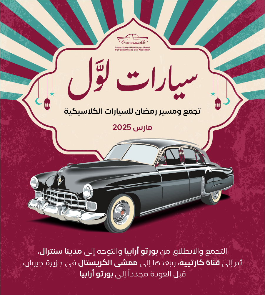 Al-Yafai added, "We are also pleased to announce the organization of another gathering and parade on the 17th of Ramadan, with the participation of members of the Qatari Gulf Classic Car Association. The gathering will begin at 9:00 AM, and the parade will start at 9:15 AM from Porto Arabia to Medina Centrale on The Pearl Island, then to Quartier Canal, followed by a tour to Gewan Island, and then back to Porto Arabia."